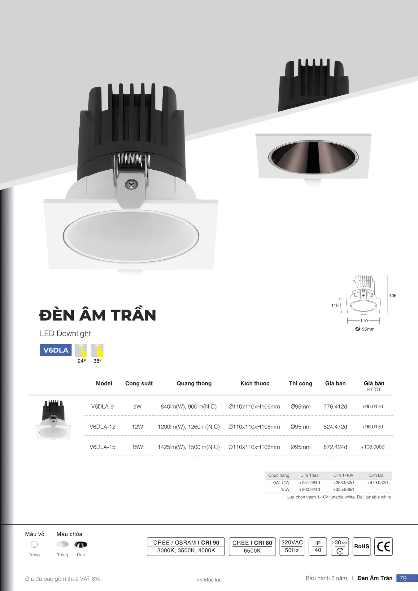 Đèn âm trần VinaLED V6DLA-9 9W