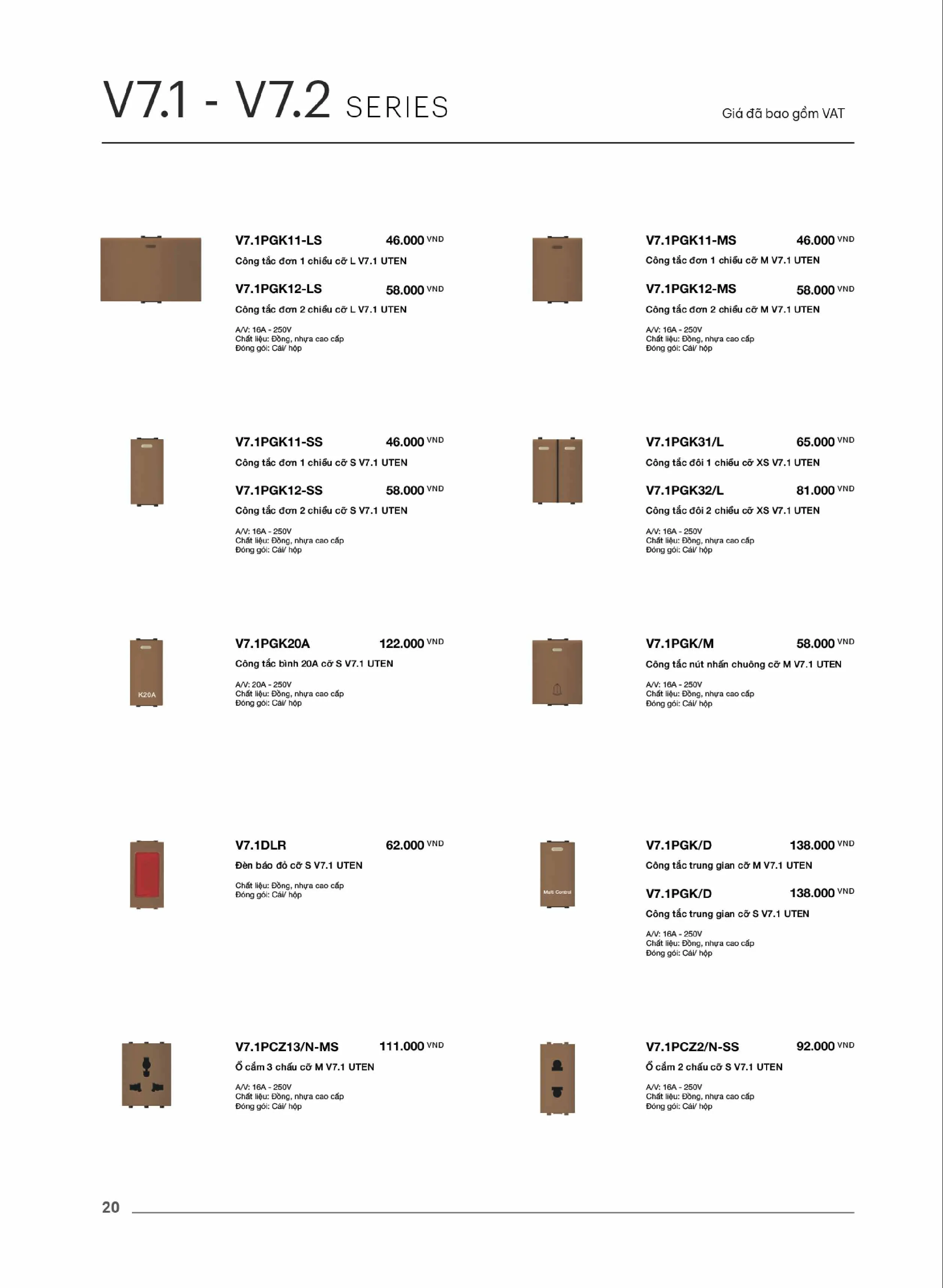 1 công tắc 1 chiều | V7.1PGK11-SS | 46.000 | 30% | 32.200 |