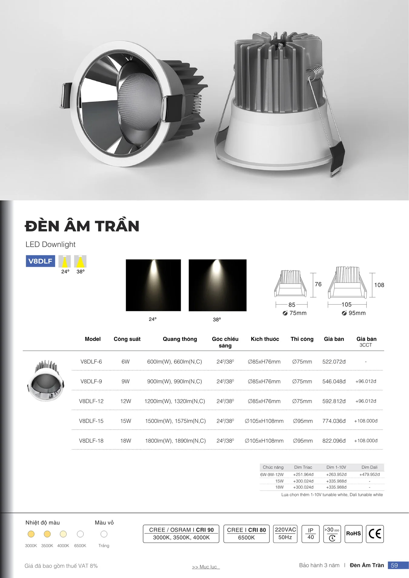 Đèn led âm trần downlight Vinaled V8DLF-18 18W