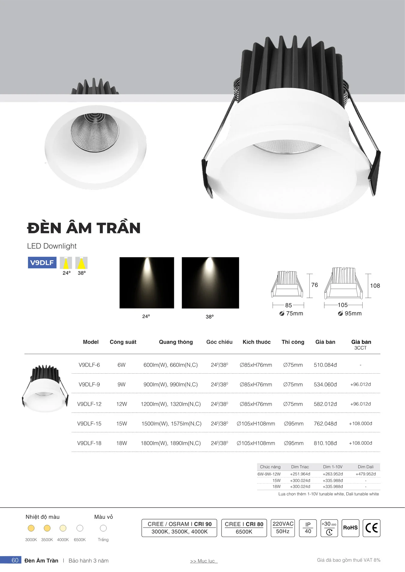 Đèn led âm trần downlight Vinaled V9DLF-6 6W