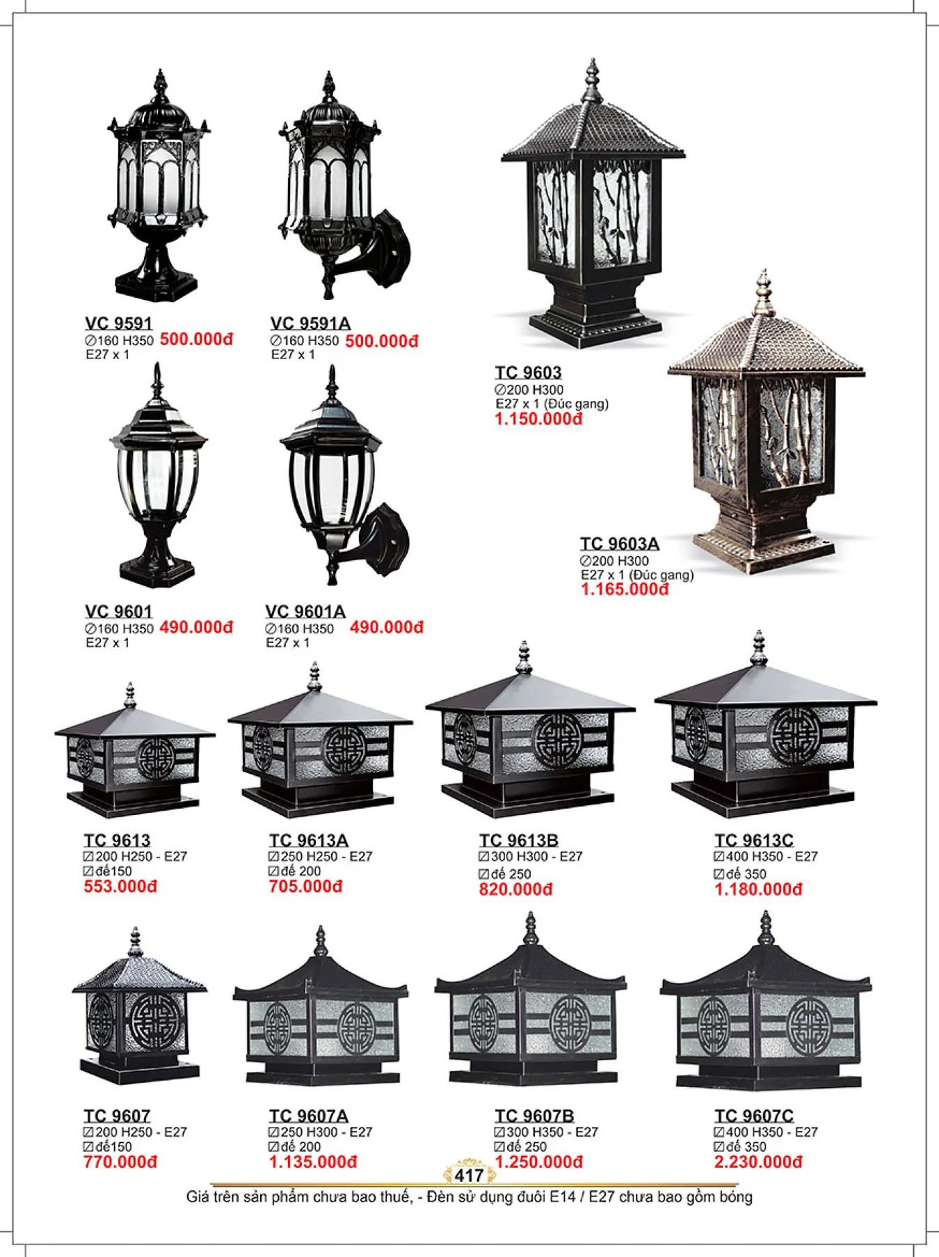 Đèn trụ cổng Sano E27*1, Ø160*H350, vỏ đen VC 9601