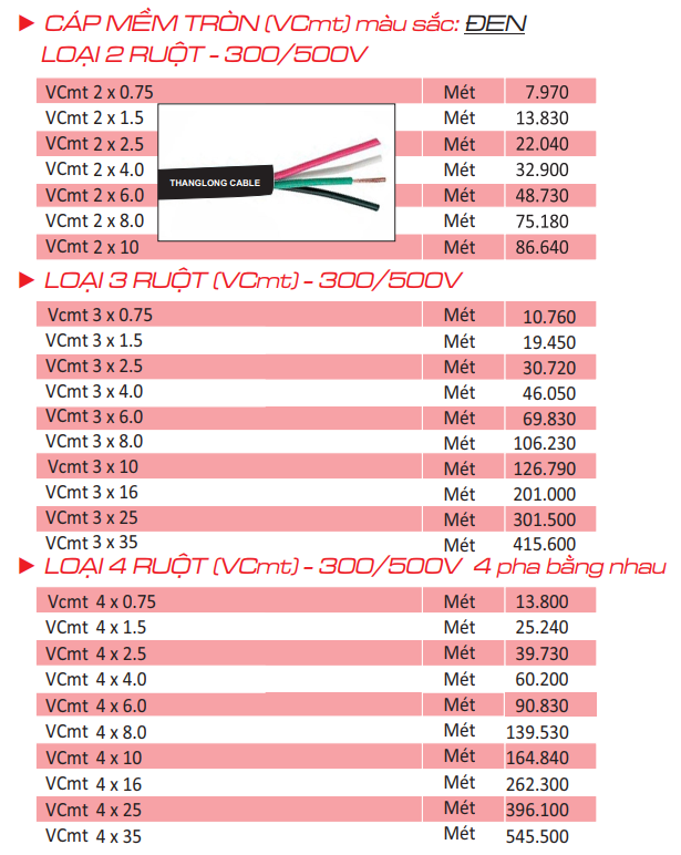 VCmt - 3x0.75 - VCmt 300V/500V, cáp mềm tròn loại 3 ruột, THALOCO Cable vỏ đen