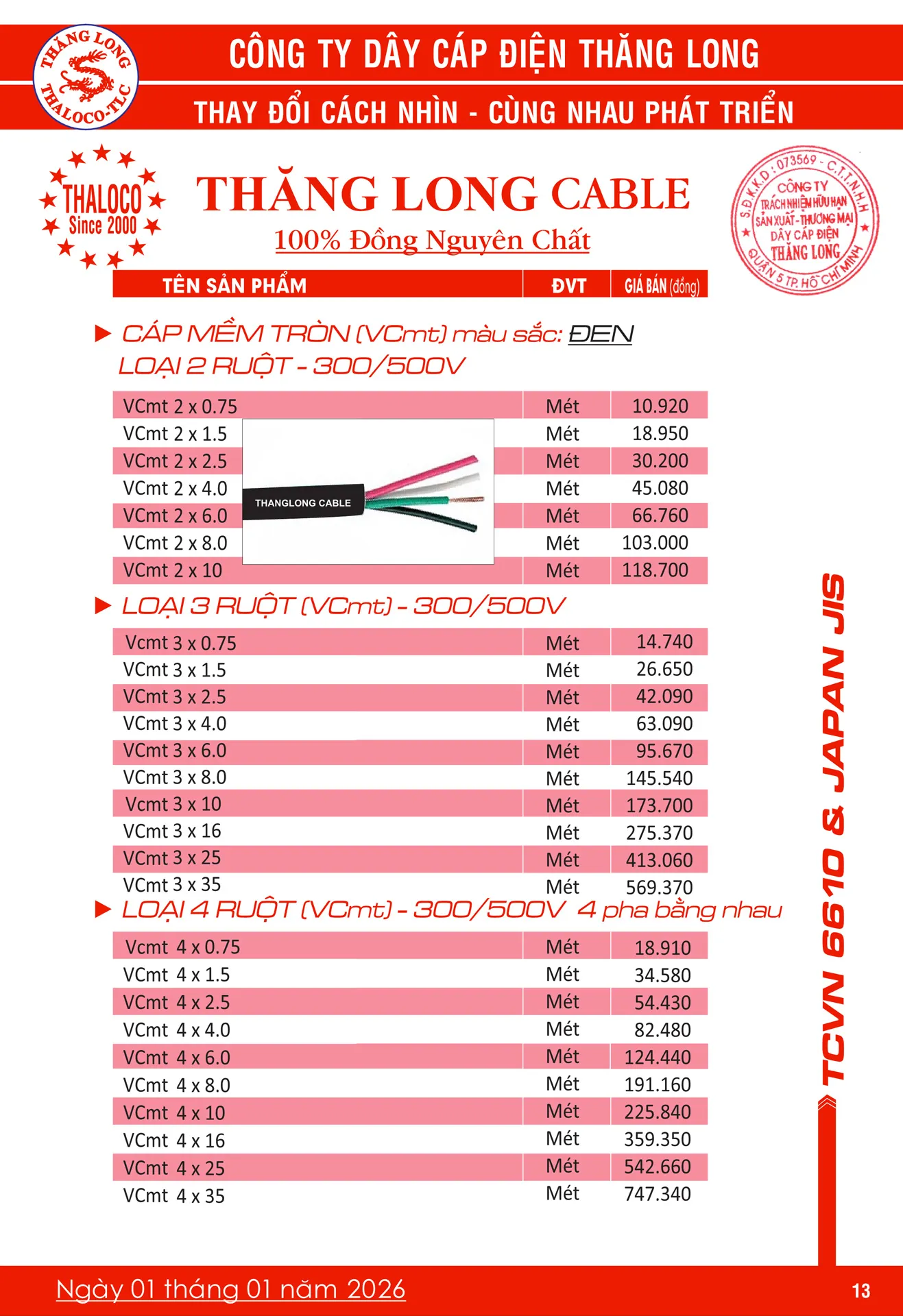 VCmt 2x0.75 - VCmt 300V/500V, cáp mềm tròn loại 2 ruột, THALOCO Cable