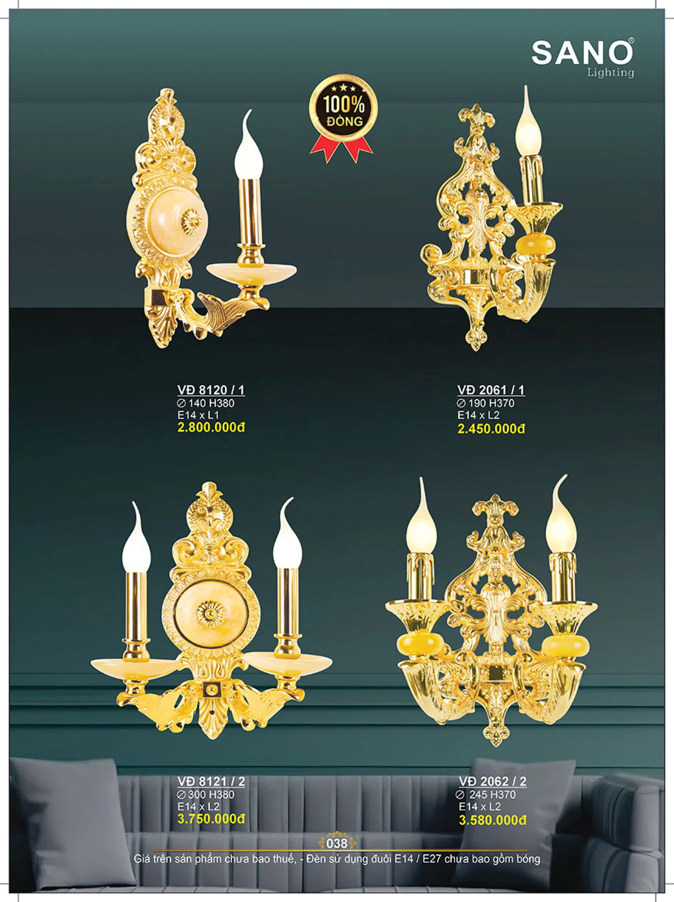 Đèn vách đồng Sano Ø245*H370mm, E14*L2