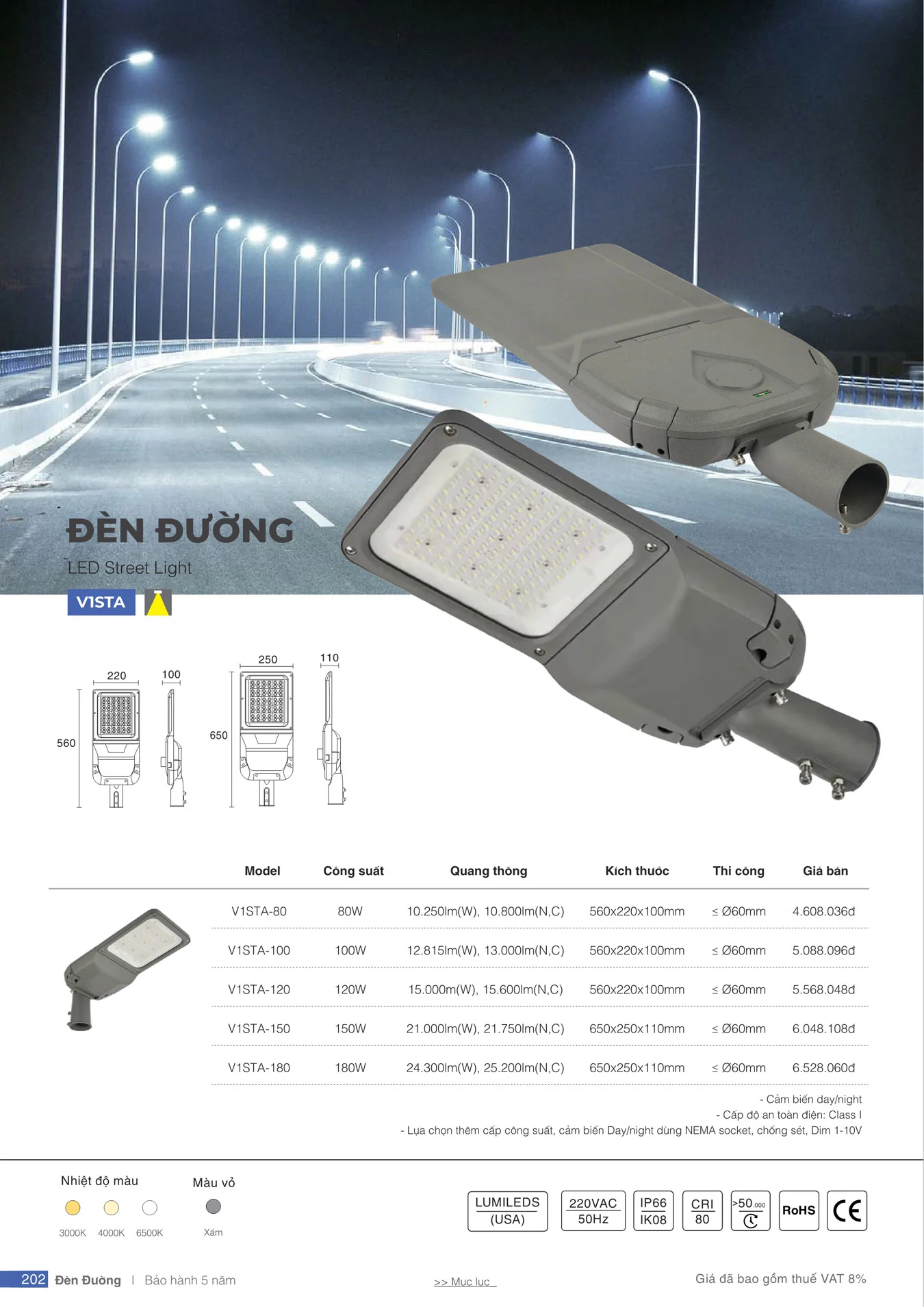 Đèn đường Vinaled mẫu V1STA vỏ xám