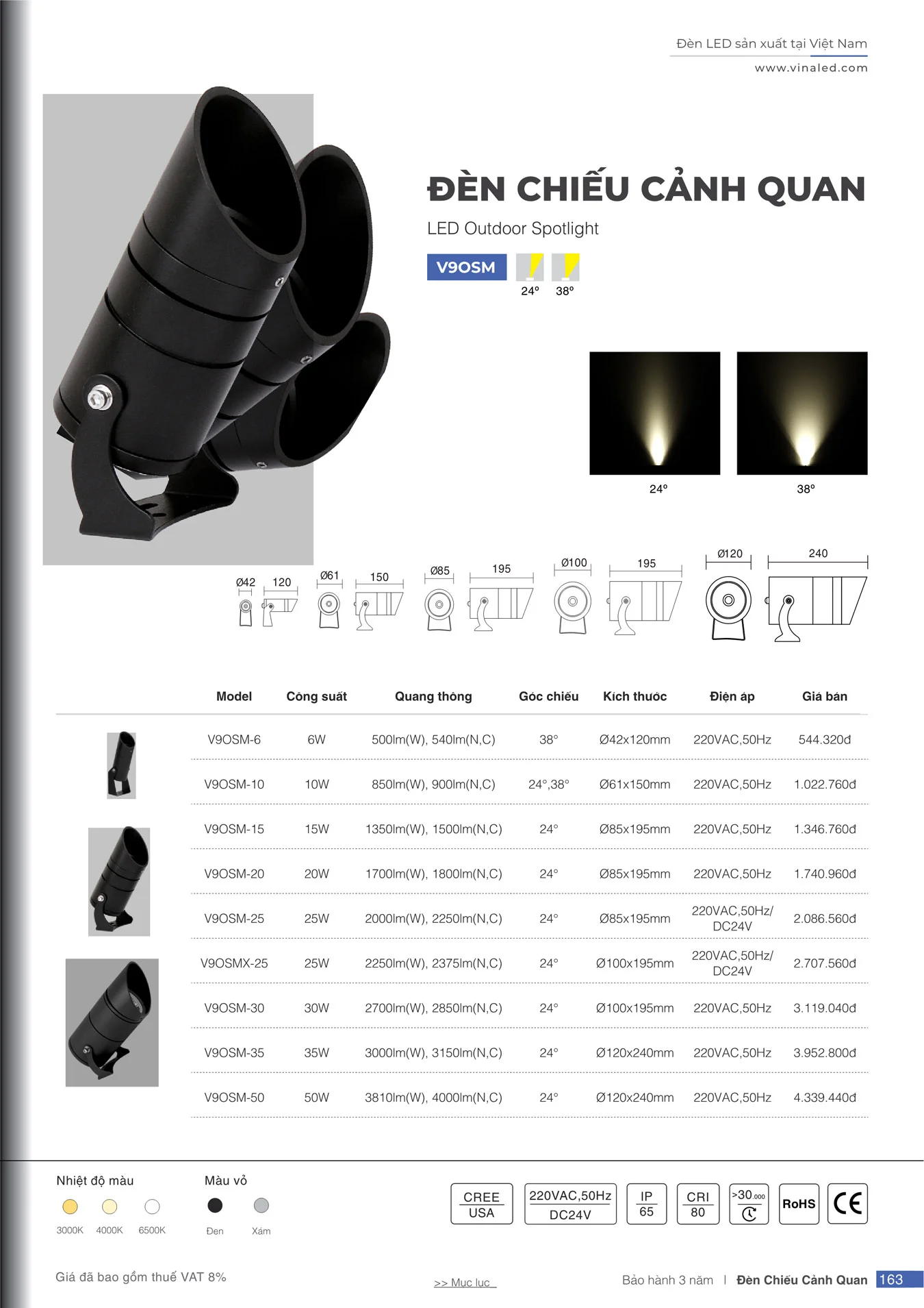 Đèn chiếu sáng cảnh quang VinaLED mẫu V9OSM vỏ xám