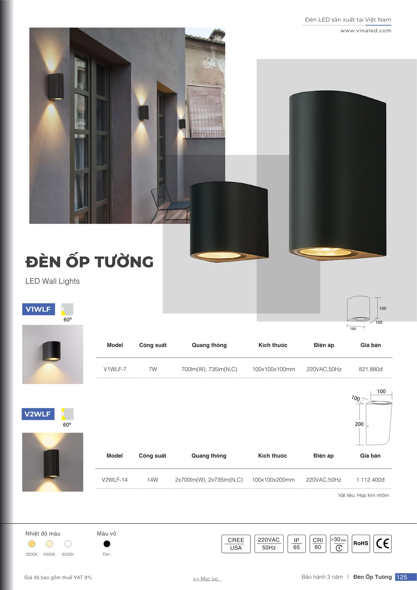 Đèn led ốp tường VinaLED 7W mẫu V1WLF-7 vỏ đen