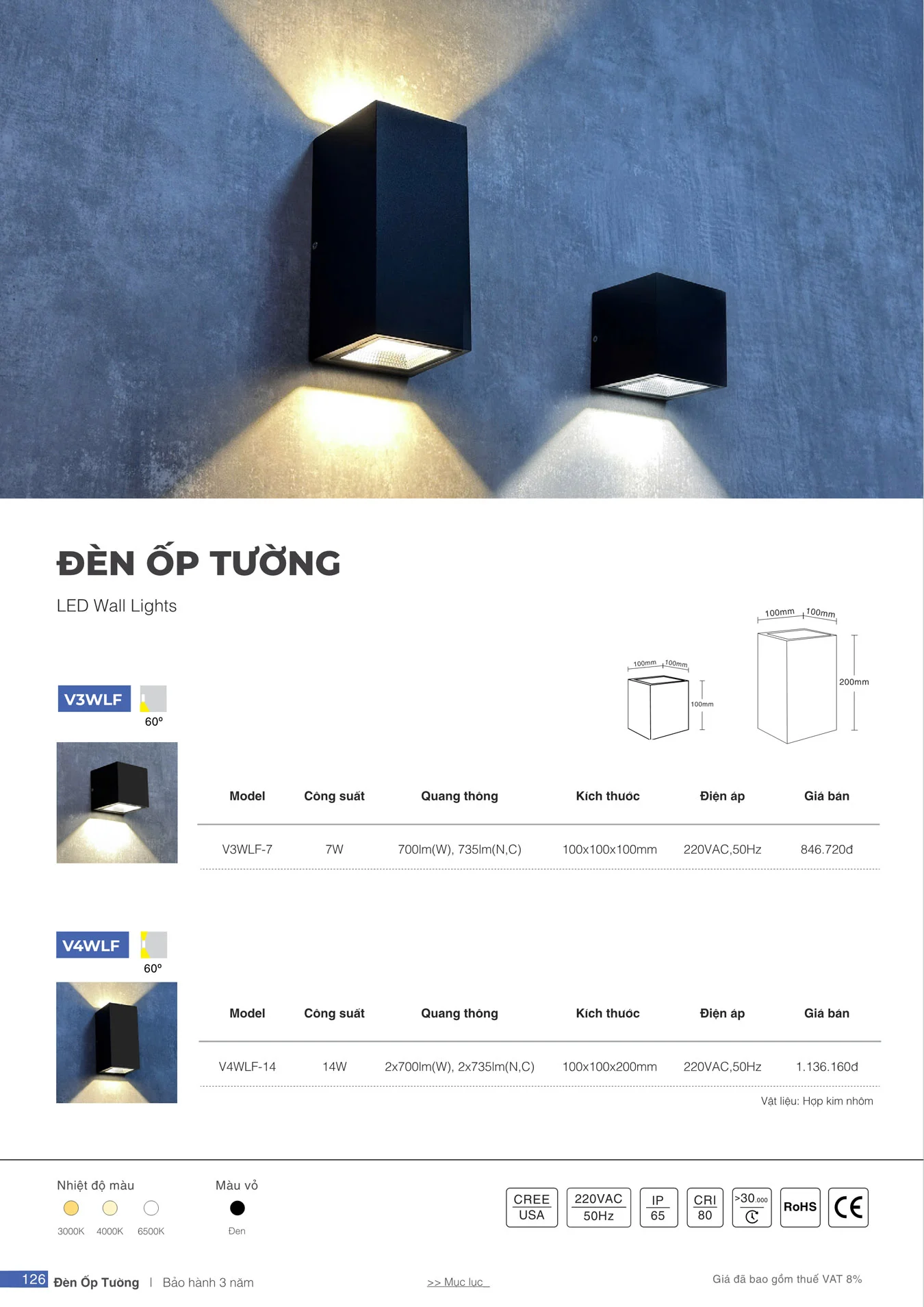 Đèn led ốp tường VinaLED vuông 14W mẫu V4WLF-14 vỏ đen