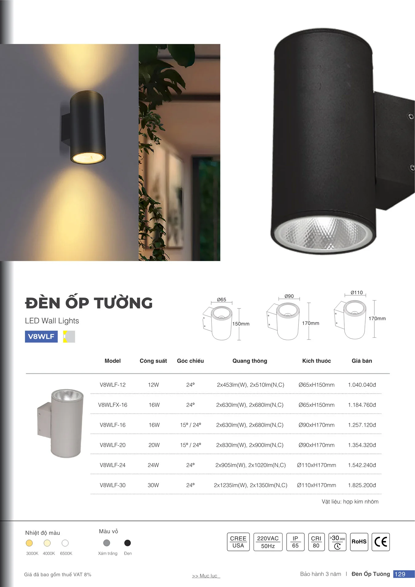 Đèn led ốp tường VinaLED 20W mẫu V8WLF-20