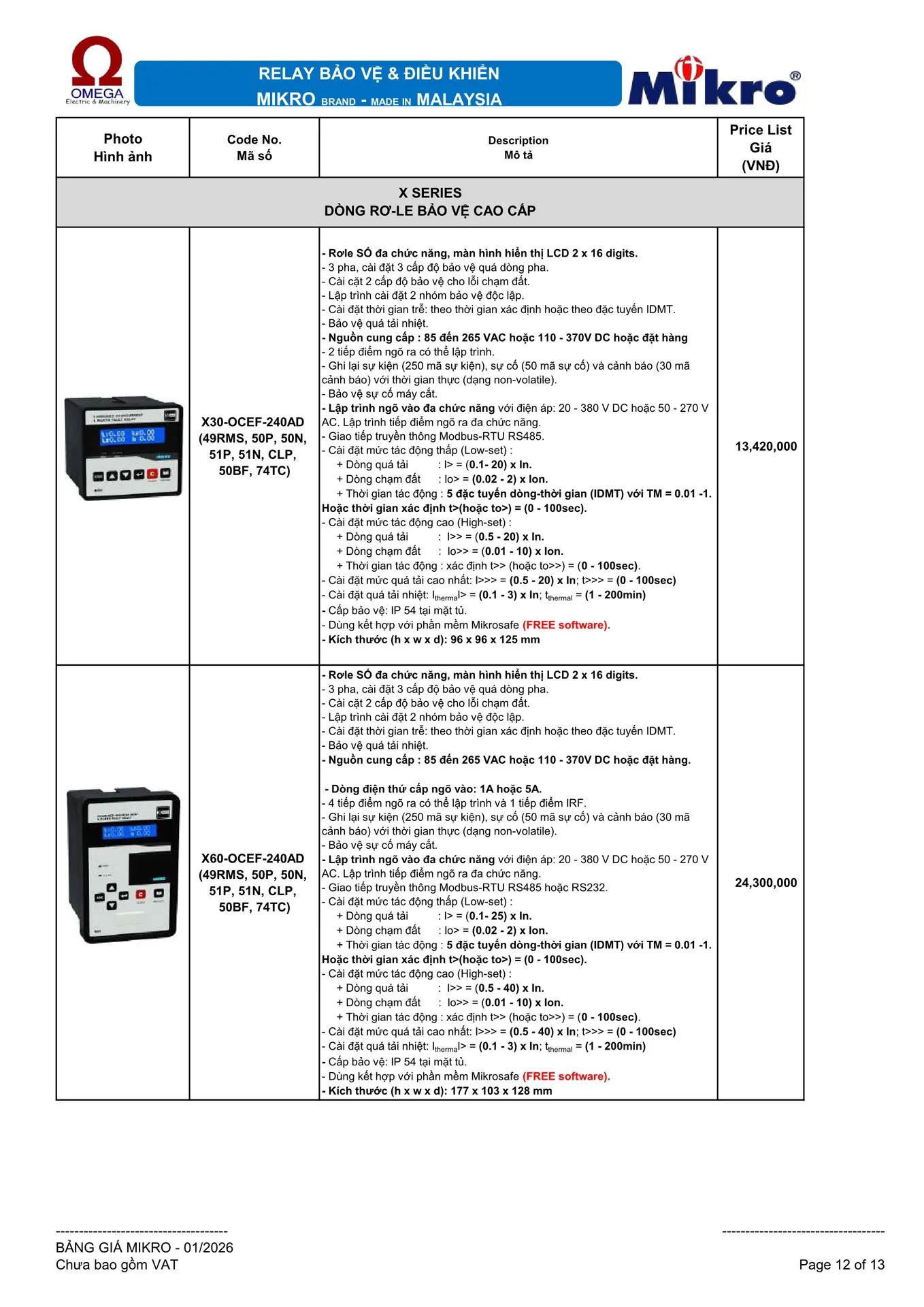 Dòng rơ-le bảo vệ cao cấp MIKRO X30-OCEF-240AD (49RMS, 50P, 50N, 51P, 51N, CLP, 50BF, 74TC)
