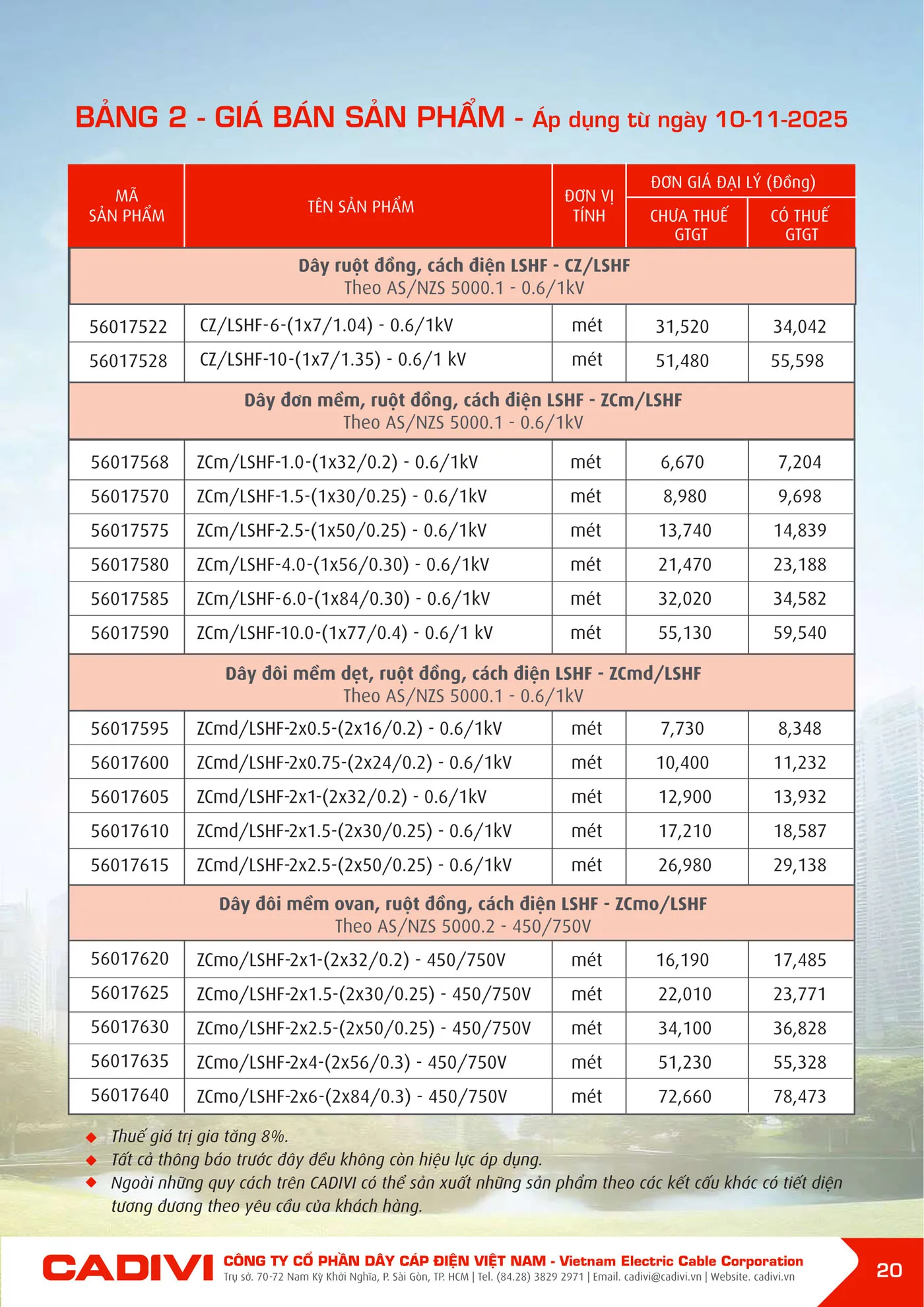 Quý khách hàng có nhu cầu mua số lượng nhiều thiết bị điện thương hiệu CADIVI, vui lòng gửi yêu cầu báo giá qua email [email protected] hoặc báo giá trực tiếp trên website để nhận chiết khấu ƯU ĐÃI TỐT NHẤT trong tháng 11.